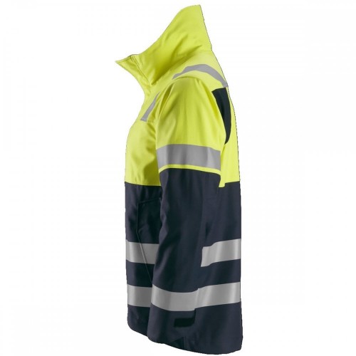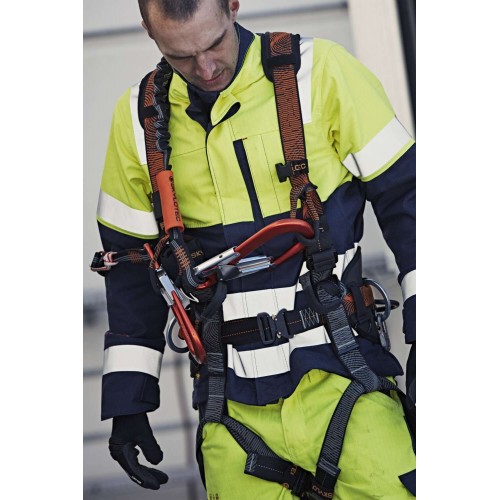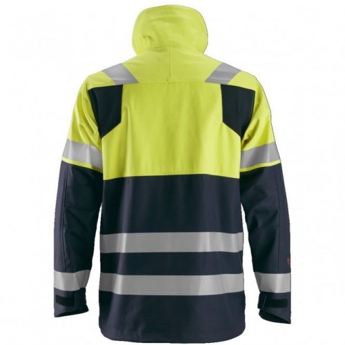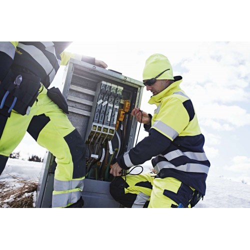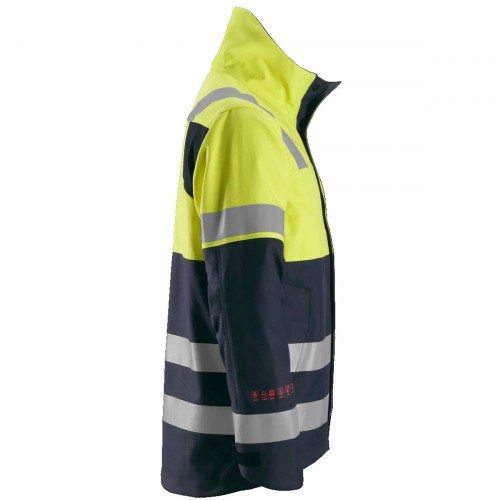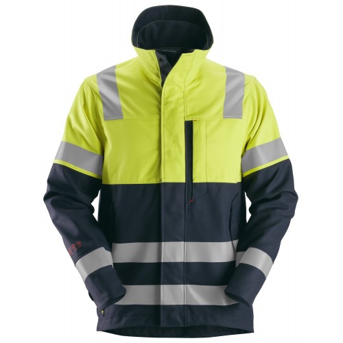 Chaqueta protectora que proporciona comodidad de trabajo, alta visibilidad y protección en áreas de trabajo de alto riesgo o entornos peligrosos. La chaqueta ofrece protección certificada contra arco eléctrico y soldadura. Adicional la seguridad es proporcionada por la protección inherente contra el calor y las llamas y las propiedades antiestáticas. Mangas predobladas con Los extremos caídos y la espalda caída brindan mayor comodidad durante el trabajo. Además, el revestimiento ignífugo en El frente, los hombros y las mangas brindan una mayor protección para las partes del cuerpo comúnmente expuestas. para mangas