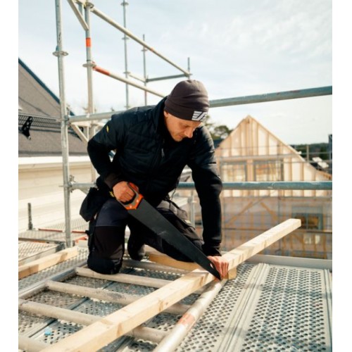 Chaqueta de trabajo multifunción fabricada con tejido de jersey transpirable y aislante reciclado Repreve® en los hombros y la parte superior del cuerpo. El resultado es una chaqueta elástica que proporciona libertad de movimiento y una calidez adicional en las zonas críticas para todo tipo de trabajos en un amplio rango de temperaturas. El diseño de las mangas proporciona una movilidad mejorada, lo que es muy útil durante el trabajo que implica una gran cantidad de movimientos de los brazo por encima de la cabeza.