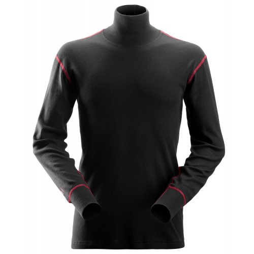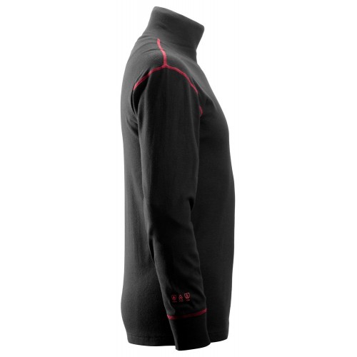 Camiseta de cuello alto de manga larga suave y versátil diseñada para ofrecer protección personal. La camiseta ofrece protección certificada contra riesgos de arco eléctrico y viene con protección inherente contra el calor y las llamas y propiedades antiestáticas. El cuello alto protege el cuello, que es una parte comúnmente expuesta durante el arco eléctrico.