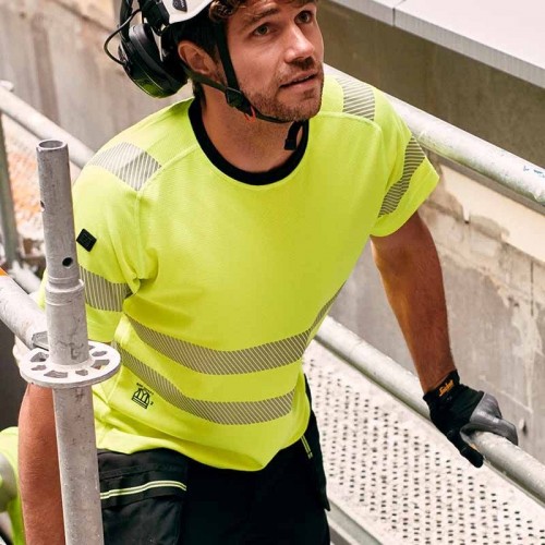 Camiseta versátil de alta visibilidad hecha de un tejido de trama doble con algodón suave en el interior y poliéster duradero y cinta reflectante segmentada termosellada en el la parte exterior. El resultado es una prenda duradera a la par que cómoda que ofrece visibilidad de clase 2 certificada conforme a la norma EN 20471. Además, la camiseta incorpora mangas raglán para una mayor libertad de movimiento.