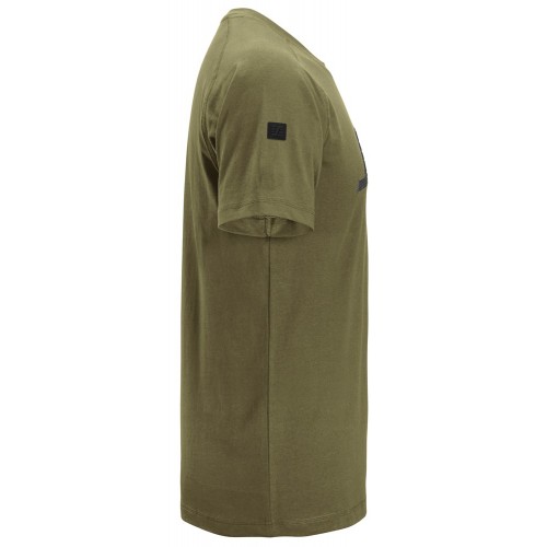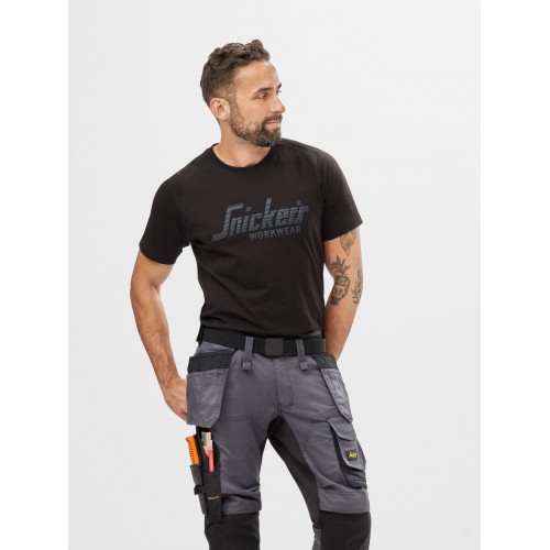 Cómoda camiseta para uso diario con mangas raglán para una mayor movilidad, cuello acanalado y el logotipo de Snickers Workwear estampado en relieve en el pecho.