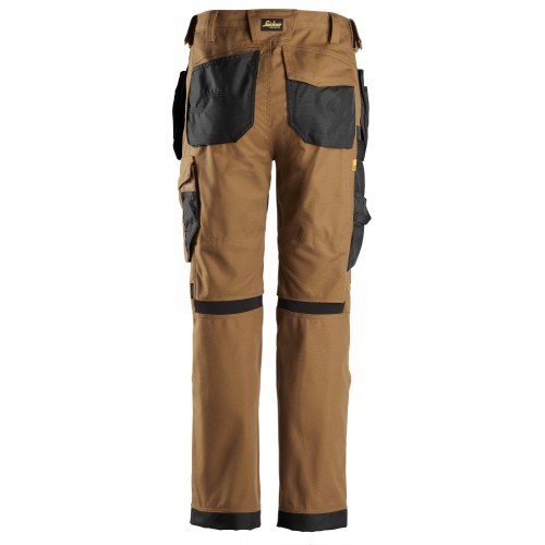 6224 Pantalones largos de trabajo elásticos AllroundWork Canvas+ con bolsillos flotantes color marrón