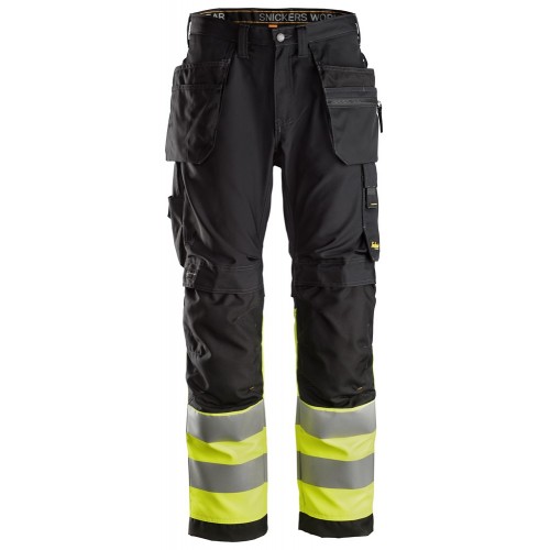 6233 Pantalones largos de trabajo de alta visibilidad clase 1 con bolsillos flotantes AllroundWork negro-amarillo