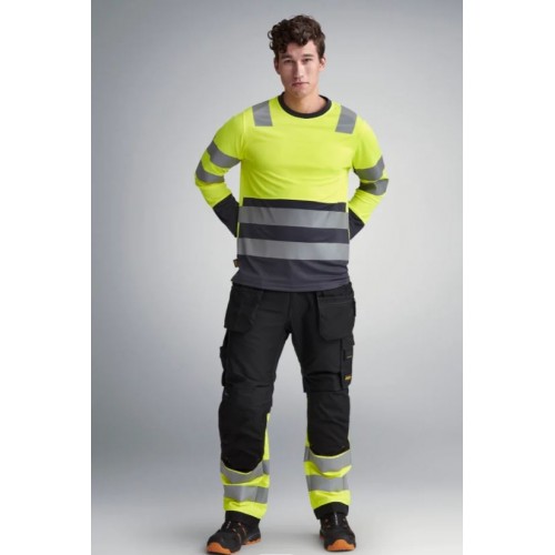 Pantalones de trabajo de alta visibilidad que ofrecen un rendimiento integral durante el uso diario. Los pantalones cumplen la clase 1 de la norma EN 20471 para garantizar la visibilidad y la seguridad adicional en condiciones de poca luz. Los bolsillos portaherramientas y reforzados con CORDURA® proporcionan un fácil acceso al equipo. El bolsillo flotante cuenta con un compartimento con cremallera que mantiene su contenido seguro. Además, los pantalones ofrecen protección de las rodillas de acuerdo con la norma EN 14404 con bolsillos reforzados KneeGuard™ y flujo de aire mecánico en las corvas para una mayor comodidad y protección.