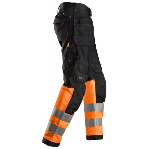 6233 Pantalones largos de trabajo de alta visibilidad clase 1 con bolsillos flotantes AllroundWork negro-naranja