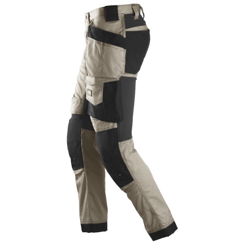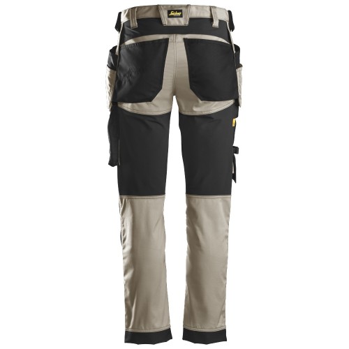 6241 Pantalones largos de trabajo elásticos AllroundWork Slim Fit con bolsillos flotantes color beige/ negro