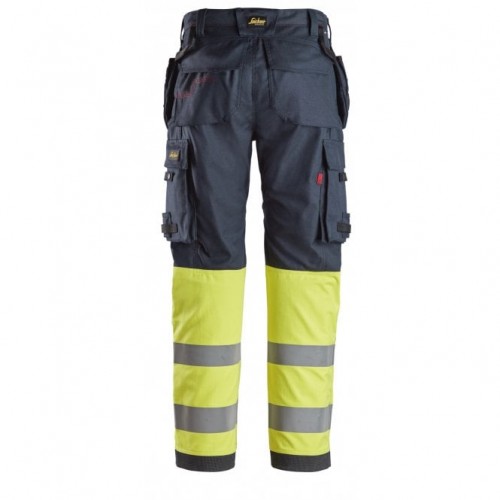 6263 Pantalones largos de trabajo de alta visibilidad clase 1 con bolsillos flotantes ProtecWork azul marino-amarillo