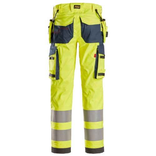 6268 Pantalones largos de trabajo elásticos de alta visibilidad clase 2 con bolsillos flotantes ProtecWork amarillo-azul marino