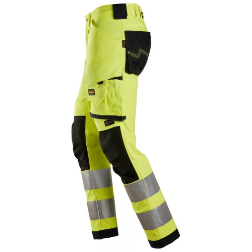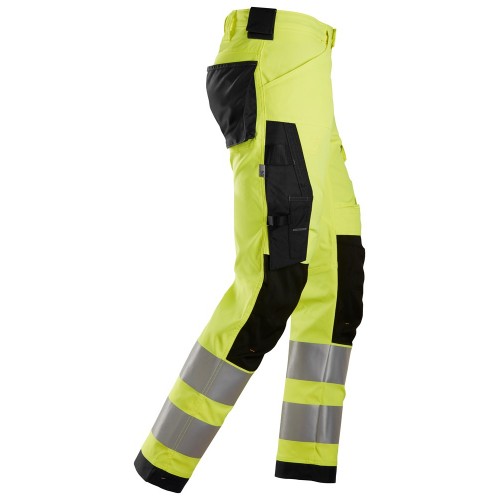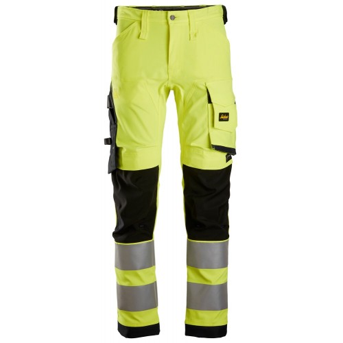 Cómodos pantalones de trabajo de alta visibilidad de clase 2 con ajuste ceñido para profesionales que trabajan en los sectores de la construcción, obras viales y transporte.