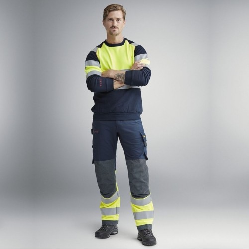 6376 Pantalones largos de trabajo de alta visibilidad clase 1 ProtecWork azul marino-amarillo