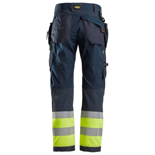 6931 Pantalones largos de trabajo de alta visibilidad clase 1 con bolsillos flotantes FlexiWork azul marino-amarillo