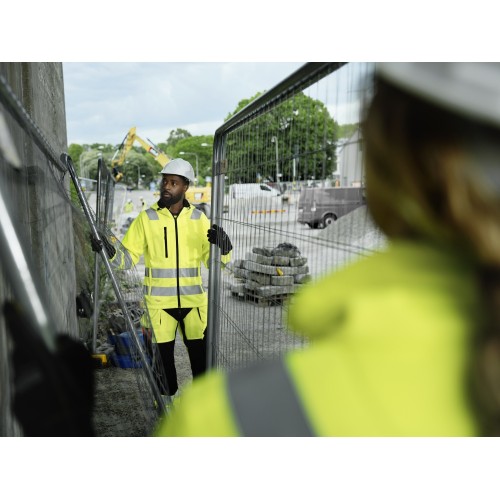 Pantalón de trabajo versátil, flexible y ligero con perneras predobladas y bolsillos flotantes, que ofrece una gran comodidad de trabajo, libertad de movimiento y protección. Los paneles elásticos CORDURA® proporcionan mayor capacidad de movimiento y durabilidad, mientras que el sistema KneeGuard™ garantiza una sólida protección para las rodillas, de acuerdo con la norma EN 14404. La clase 2 de alta visibilidad aumenta la seguridad laboral en condiciones de poca luz y peligrosas. Además, este pantalón de trabajo viene con bolsillo para regla y un bolsillo de carga elástico y duradero con insignia de identificación.