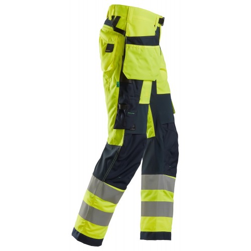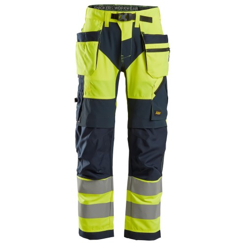 6932 Pantalones largos de trabajo de alta visibilidad clase 2 con bolsillos flotantes FlexiWork amarillo/ azul marino
