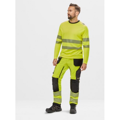 6943 Pantalones largos de trabajo elásticos de alta visibilidad clase 2 con bolsillos flotantes amarillo/ negro