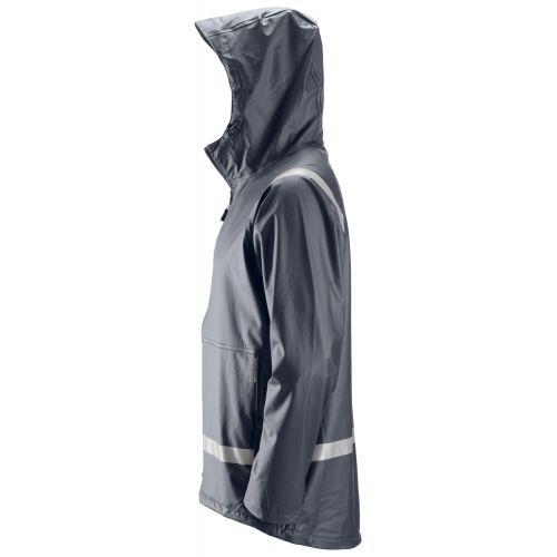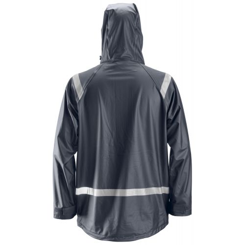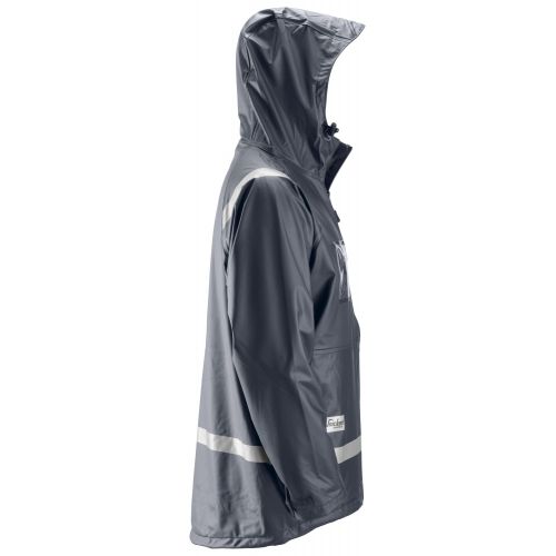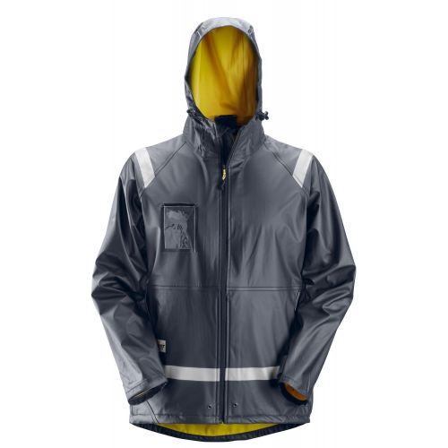 Vence a la lluvia. Para un día de trabajo seco 100% viste esta chaqueta completamente impermeable, con revestimiento de PU con costuras selladas. Fabricada en material suave y elástico para un mayor confort. Cumple con la norma EN 343.
