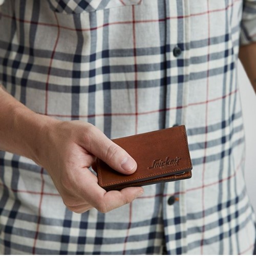 Soporte de tarjeta atemporal de cuero de grano completo hecho con residuos de cuero, lo cual hace que este producto elegante sea una opción ecológica.