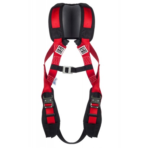 Arnés anticaída según norma EN361:2002 con dos puntos de enganche anticaídas, uno dorsal y otro pectoral en forma de gazas como prolongación de las bandas de la zona abdominal para asegurar al usuario.