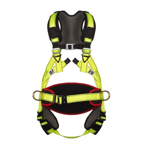 Este equipo cuenta con un cinturón de sujeción incorporado al arnés de forma integral que impide su desmontaje. Diseñado con un sistema de acolchado para optimizar el confort del usuario con dos puntos de enganche de sujeción a ambos lados del cinturón formados por anillas planas de acero.