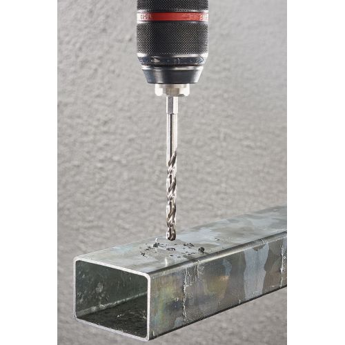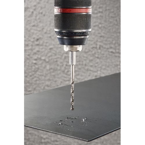 Esta broca para metal de HSS es perfecta para taladrar materiales duros, como el acero. El ángulo de la punta de 118° facilita el posicionamiento de la broca y el progreso de taladrado. El filo rectificado proporciona un alto rendimiento de taladrado en funcionamiento continuo. La alta precisión de concentricidad se alcanza mediante rectificado de precisión. El incremento del núcleo proporciona una gran estabilidad y minimiza el riesgo de rotura. El estrechamiento del diámetro permite reducir la generación de calor, lo que protege la broca y el material. El amplio canal permite una evacuación eficaz de las virutas. La broca para metal está disponible en diferentes tamaños y tiene un vástago hexagonal de ¼» para un cambio de herramienta rápido en el portapuntas. Cumple con la norma DIN 338.