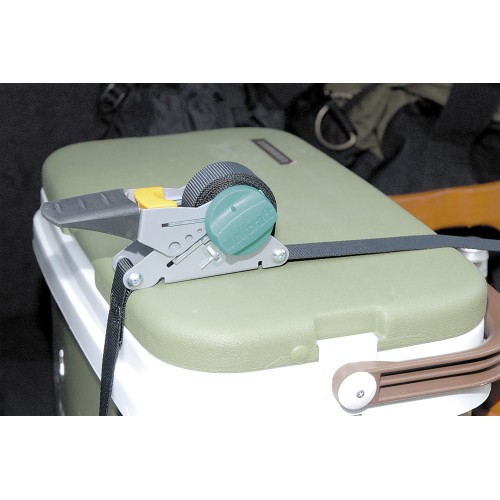 Cincha con carraca con gancho y mecanismo de rebobinado