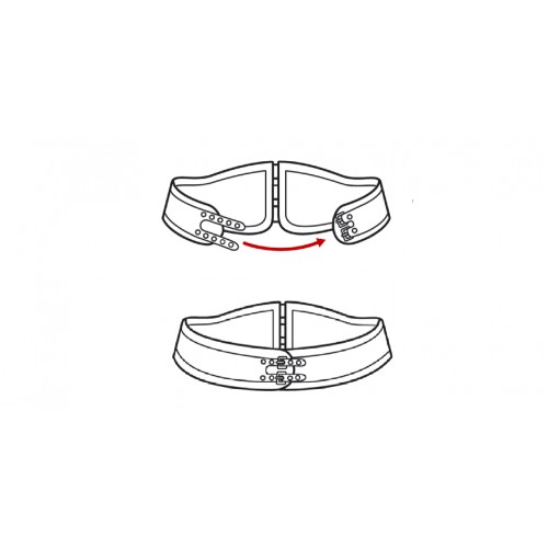 La FAJA está compuesta de dos bandas de loneta de algodón de ancho variable 23 cm (ancho máximo en la zona lumbar) y 11 cm (mínimo en la zona abdominal) con bordes protegidos por ribete de cinta de polipropileno. La unión de las dos bandas se realiza mediante tres tramos de cinta elástica ortopédica para aportar confort y facilitar un ajuste óptimo. Refuerzos en zona lumbar y en la zona abdominal de regenerado cuero acabado “cabra” que terminan en tipo cinturón con doble cierre de hebilla. El CIERRE está formado por dos cierres de hebilla en un extremo fijadas mediante remache niquelado y en el otro, dos terminaciones con 4 ojetes metálicos cada una para la regulación.
