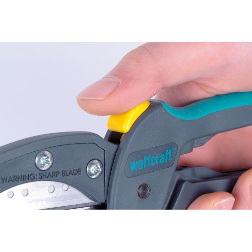 Con la cuchilla de acero inoxidable sumamente cortante de este cortador universal, puede cortar fácilmente materiales sólidos como mangueras, cables e incluso cuero de hasta 13 mm de grosor. Con su mango ergonómico y antideslizante, megaCut se adapta cómodamente a la mano. Una pestaña de seguridad con muelle en la parte delantera del portacuchillas sirve de protección para evitar el contacto accidental con la cuchilla. El dispositivo de bloqueo integrado ofrece protección adicional contra lesiones. Se incluye una cuchilla de repuesto.