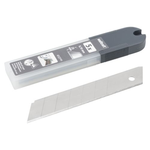 Nuestras cuchillas separables profesionales están fabricadas con material HCS de alta calidad y ofrecen una larga vida útil. Gracias a su afilado por ambos lados y al doble bisel, son especialmente precisas y garantizan cortes limpios. La cuchilla mide 25 mm de ancho y 0,7 mm de grosor. Consta de 7 segmentos separables.