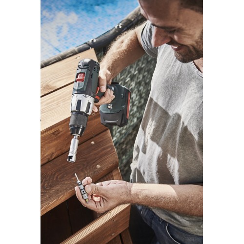 Con 2 dobles soportes intercambiables adicionales puede ampliar su juego Flipbit y preparar óptimamente el trabajo en 2 etapas con el destornillador inalámbrico o el taladro, como el pretaladrado y el atornillado. Puede equipar el doble soporte intercambiable en ambos lados con las herramientas deseadas e insertarlas en su alojamiento Flipbit ya existente con el primer lado requerido hacia arriba. Para cambiar la herramienta, solo tiene que darle la vuelta. Esto ahorra el costoso cambio de herramientas durante el proceso de trabajo.