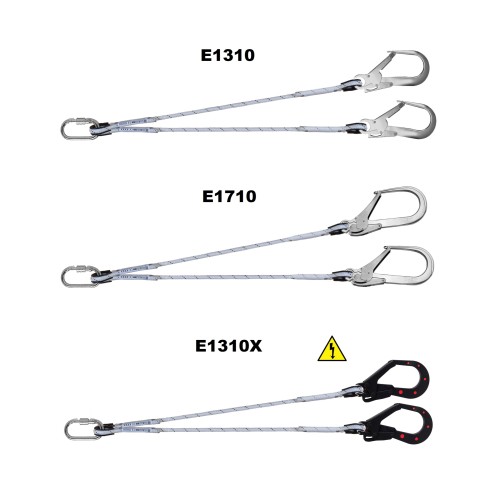 Elemento de amarre anticaídas de doble ramal de cuerdas trenzadas de 11 mm fabricada en poliamida según norma UNE EN 354:2010.