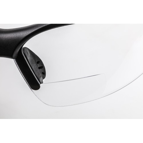 Las gafas de seguridad con cristales de plástico protegen los ojos frente a peligros mecánicos e impactos con baja energía (hasta 45 m/s). Para corregir la hipermetropía, los cristales disponen de una zona graduada en la parte inferior. Las gafas están disponibles con distintas graduaciones. Como gafas de la clase óptica 1, son adecuadas para trabajos con requisitos de capacidad visual particularmente altos y también pueden utilizarse de forma continua. Para que los cristales se mantengan siempre transparentes y no se empañen, están equipados con un revestimiento especial. Un revestimiento adicional resistente a los arañazos garantiza una larga vida útil. Las gafas de protección laboral se han probado según la norma EN 166:2001 y cumplen el reglamento relativo a los equipos de protección individual (UE) 2016/425. Este es un producto de calidad garantizada. Tenga en cuenta las indicaciones de seguridad y manejo.