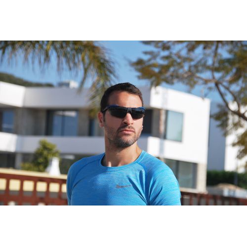 Montura: Cómoda, extremadamente envolvente, ergonómica y resistente. Puente nasal de material blando suave. Patillas ajustables en longitud e inclinación.