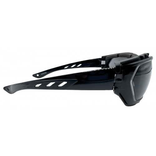 Montura cómoda, ergonómica, duradera y extremadamente envolvente. Equipada con espuma interna de quita y pon para una mejor adherencia al rostro. No contiene ninguna pieza metálica. Patillas ranuradas para crear una pequeña refrigeración en ambientes y trabajos con exposición a fuentes de calor.