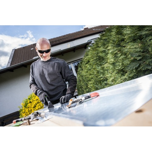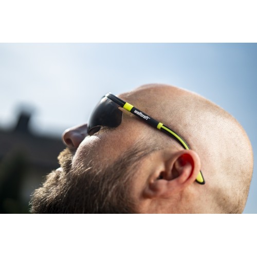 Las elegantes gafas de seguridad ahumadas con cristales de plástico protegen los ojos frente a peligros mecánicos e impactos con baja energía (hasta 45 m/s). El diseño deportivo con detalles de neón ofrece una buena visibilidad, ideal para aplicaciones en exteriores. Con el nivel de protección 5, ofrece además una amplia protección frente a la radiación ultravioleta (100 % de UV-C/100 % de UV-B/80 % de UV-A), mientras que los cristales ahumados protegen de la luz deslumbrante.