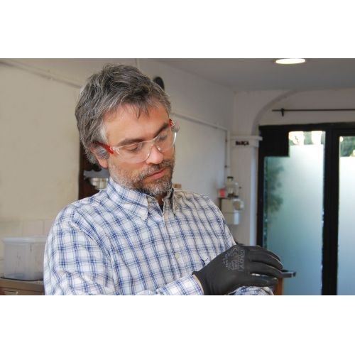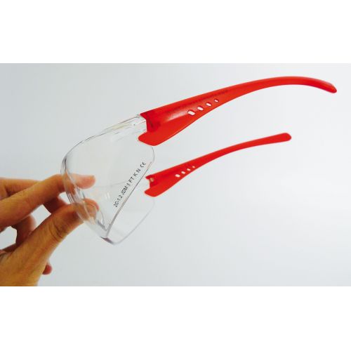 Montura: Cómoda, extremadamente envolvente, ergonómica y resistente. Gafas extremadamente ligeras para garantizar el mejor confort durante su uso. Patillas con tomas de aire laterales para crear una pequeña refrigeración en ambientes y trabajos con exposición a fuentes de calor.