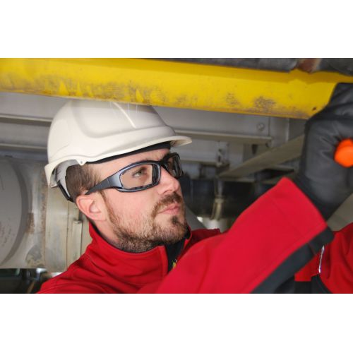 Gafas de protección laboral con lente transparente indicadas para trabajar, moda o sport con normativas: CE EN 166 + EN 170, clase óptica 1 para un uso continuado, para resistir una fuerza mecánica F T, velocidad de impacto 45 m/s de baja energía.