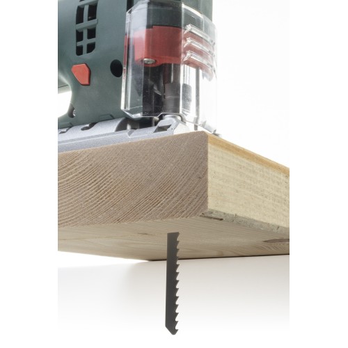 2 hojas de sierra de calar HCS, profundidad de corte 5 – 40 mm, distancia entre dientes de 2,5 mm
