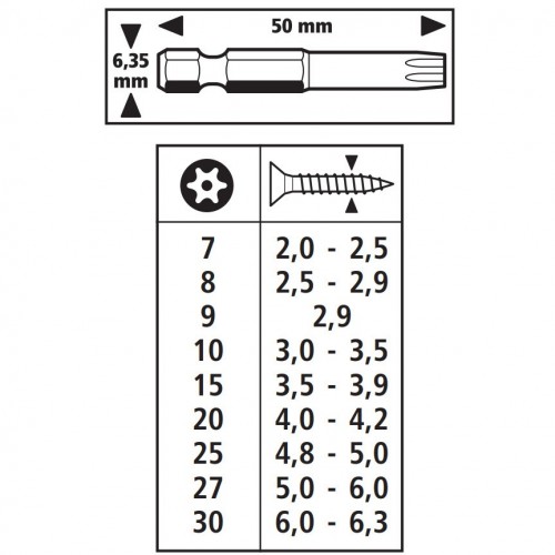 · 3 puntas Solid, 50 mm, para tornillos de seguridad con cabeza TORX® con agujero