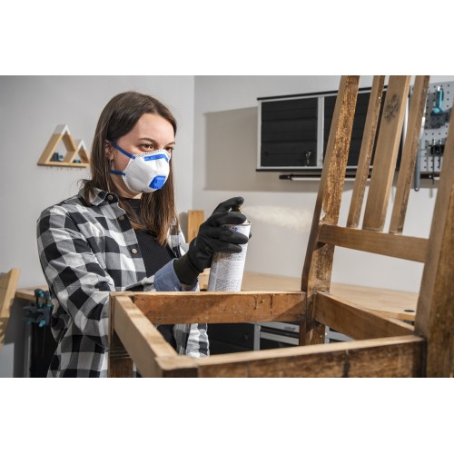 La máscara de protección respiratoria de la clase de filtrado FFP2 con diseño rígido protege de forma fiable frente al polvo y los aerosoles nocivos para la salud, y es ideal para trabajos de lijado, cepillado y aislamiento. La clase de protección está dimensionada para filtrar el 94 % de las partículas hasta un tamaño de 0,6 μm y para un uso seguro en el lugar de trabajo hasta un valor 10 veces mayor que el límite de exposición profesional. La máscara de protección respiratoria es un producto desechable que se puede utilizar durante un turno de trabajo. El tejido filtrante suave es muy agradable al tacto y ofrece un cierre óptimo a lo largo del contorno de la cara. La pieza para la nariz es flexible, lo que permite ajustarla para una mayor comodidad. Su innovadora tecnología de filtrado y una válvula adicional facilitan la respiración. La máscara de protección respiratoria cumple el reglamento relativo a los equipos de protección individual (UE) 2016/425. Cumple las condiciones especiales de la prueba de retención de polvo de dolomita y ofrece seguridad con la calidad controlada según la norma EN 149:2001 + A1:2009. Tenga en cuenta las indicaciones de seguridad y manejo.
