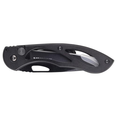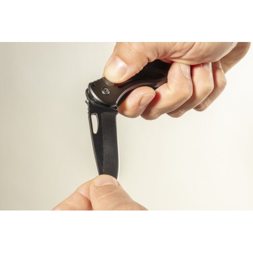 Esta navaja plegable es una herramienta práctica y versátil para acampada, actividades al aire libre, aficiones y bricolaje. Consiste en una carcasa de metal de alta calidad con revestimiento de aluminio y una cuchilla lisa de 70 mm. El mecanismo de seguridad le protege frente a lesiones al desplegar y desbloquear la navaja.