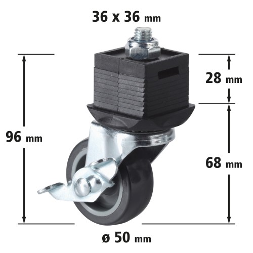 Pata con rueda y freno, giratoria