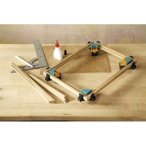Los dos sargentos para esquinas son los dispositivos de fijación ideales para atornillar o encolar tableros en un ángulo de 90°. Están fabricados con plástico reforzado con fibra de vidrio y son un compañero duradero en muchos proyectos de construcción de muebles. Gracias al mecanismo de resorte, pueden manejarse cómodamente con una sola mano y se adaptan automáticamente a grosores de tablero de entre 10 y 22 mm. En las mordazas de sujeción recubiertas de goma con alojamiento de 90°, las esquinas de la pieza se sujetan de forma segura. Gracias a las zonas blandas antideslizantes, es posible fijar las uniones angulares sin dañar la superficie. Una vez sujeta la pieza, ambas manos están libres para realizar la unión atornillada. También en caso de trabajos de encolado, los bordes de la pieza permanecen en la posición deseada durante el tiempo de secado.