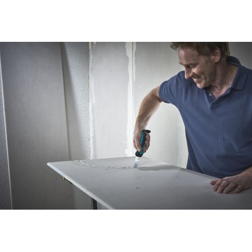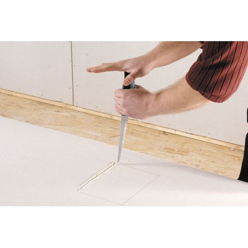 Los cortes más pequeños en las planchas de placas de yeso con esta sierra de calar manual son especialmente precisos y cómodos. Con la punta especialmente afilada, puede realizar el corte de manera controlada y lograr un corte por inmersión preciso. Los dientes de corte de una pieza templados por inducción garantizan un corte sin esfuerzo y un avance rápido. El mango bicomponente, con su zona blanda, se adapta bien a la mano y le permite trabajar de forma ergonómica y segura. El serrucho manual es un producto de calidad duradero que lo acompañará en numerosos proyectos de obra en seco.